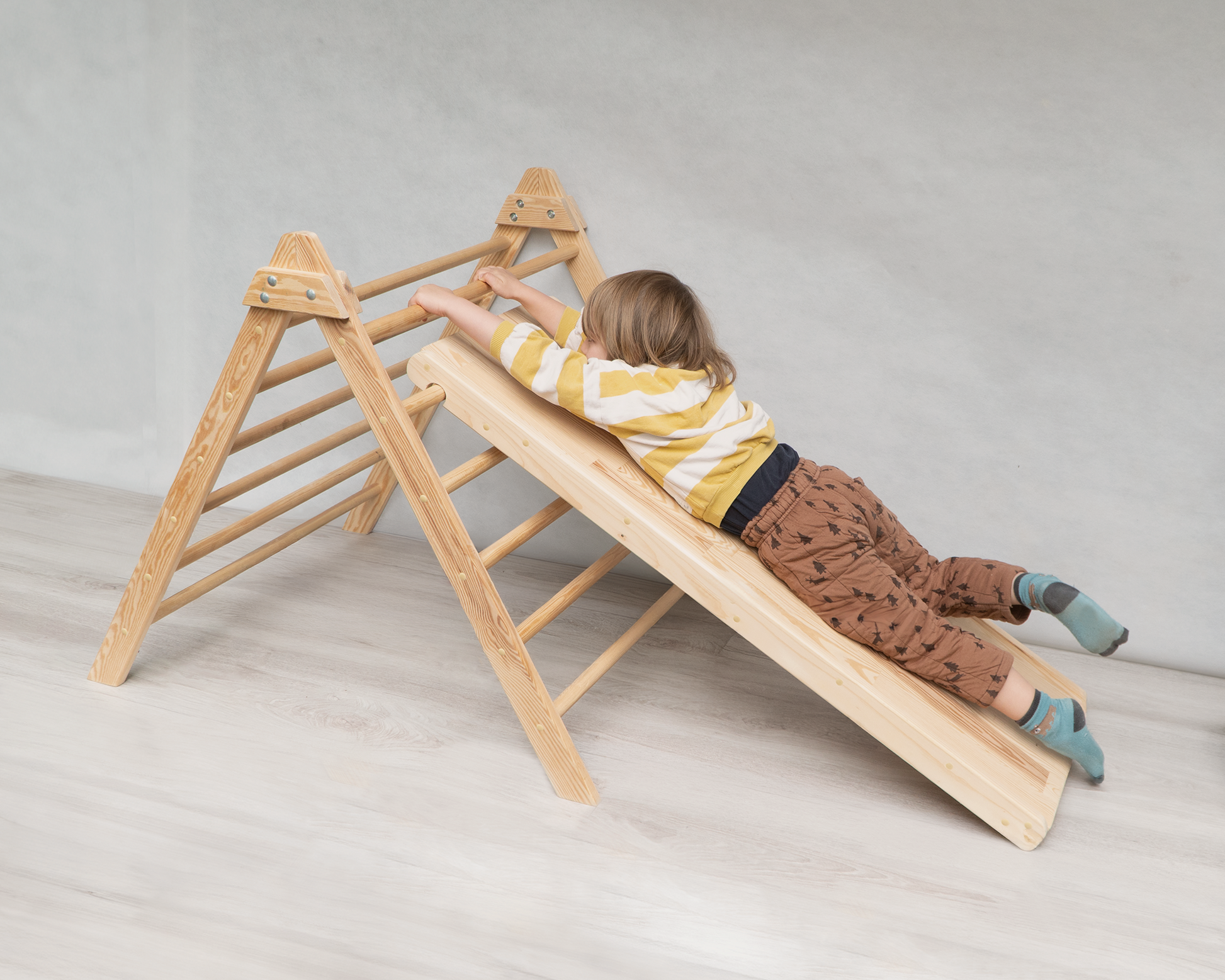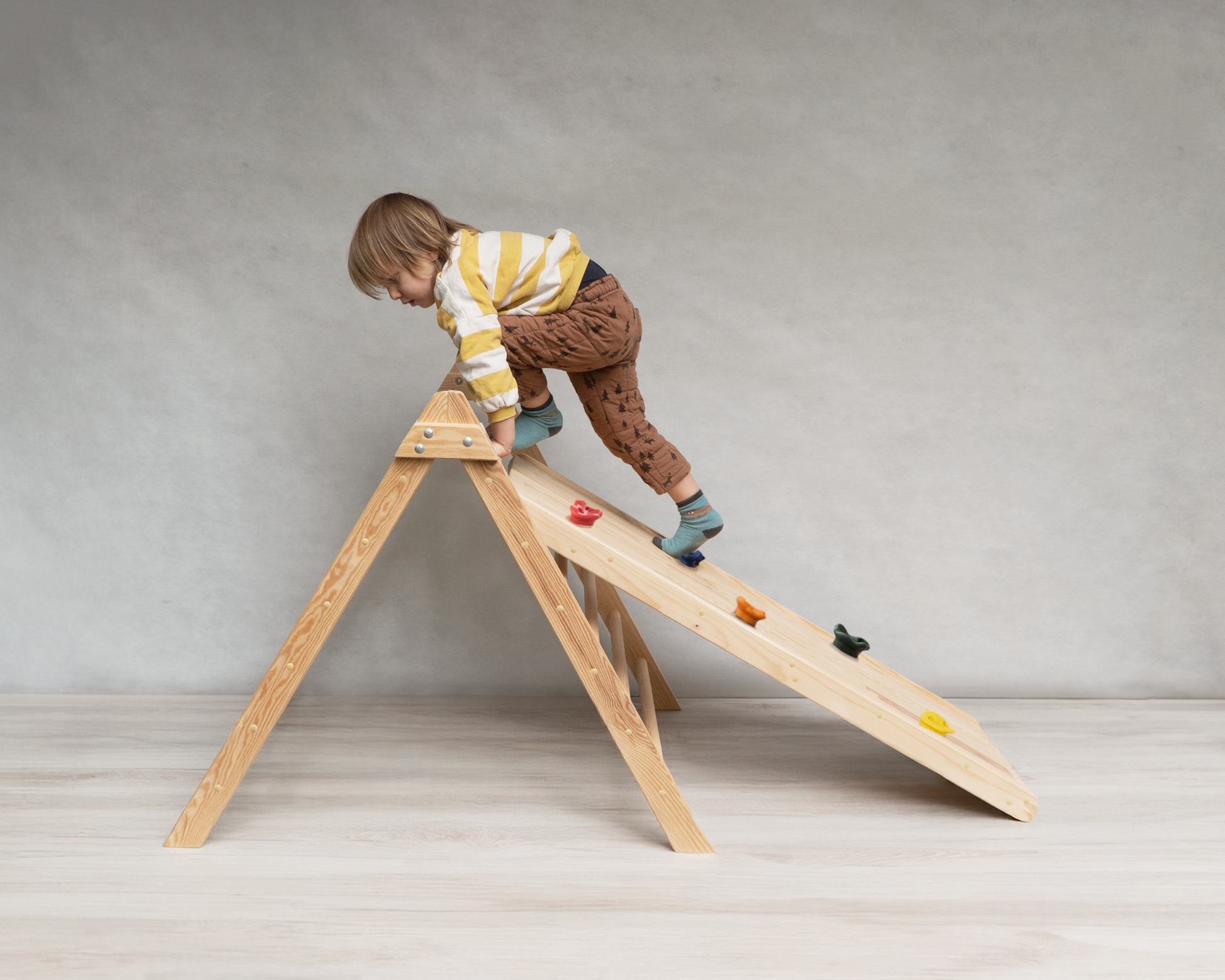 Skab den perfekte indendørs legeplads med vores alsidige klatresæt! I vores butik finder du enkelte dele og færdige kombinationer, der passer til dine behov, herunder klatrebræt, rutsjebane, trekant og et komplet sæt med trekant og rutsjebane. Alle elementer er fuldt kompatible, så du frit kan kombinere dem. Trekanten er designet til at kunne holde op til to brætter ad gangen, hvilket giver endnu flere legemuligheder.