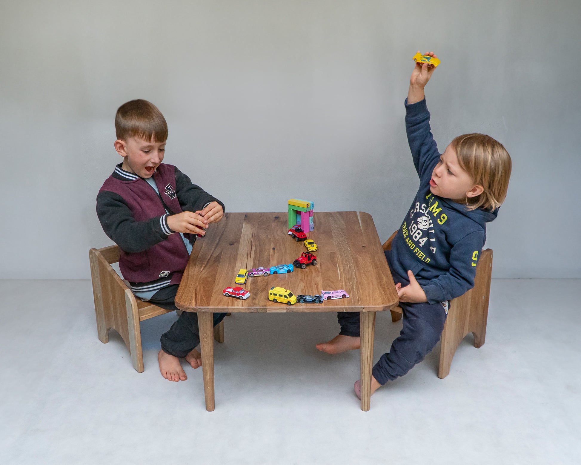 All materials—including the oak wood and finishes—are EU-sourced and meet the highest safety and quality standards. Only EU-certified, child-safe paints and waxes are used.