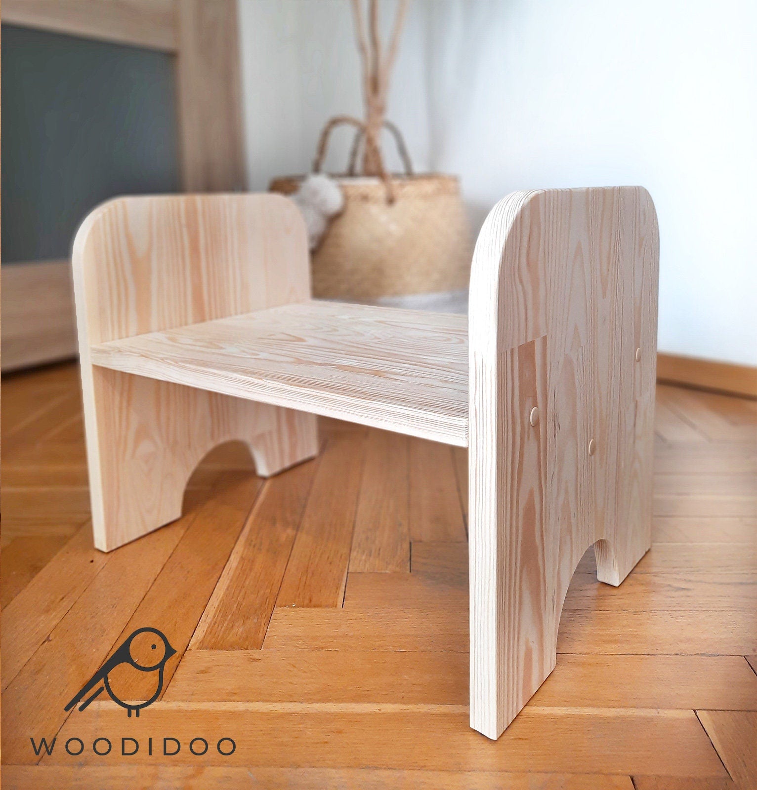 Crafted from high-quality, natural pine wood sourced from the EU, this handmade bench is a versatile and durable addition to any home. Designed for children aged 1 year and up, it serves as both a sturdy step for little ones and a comfortable bench. With a smooth, unvarnished finish, it maintains the natural beauty of the wood, making it a safe and eco-friendly choice. Perfect for nurseries, playrooms, or any space where extra seating or a step stool is needed.